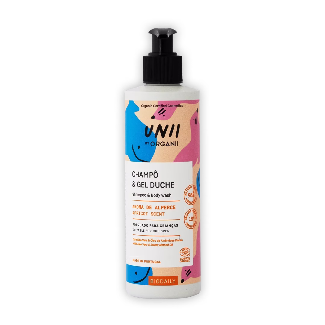 Cuide da pele e do cabelo sensíveis das crianças com o Champô & Gel de Duche Criança de Alperce BioDaily, uma fórmula suave e natural que respeita a delicadeza dos mais pequenos. Com Aloe Vera hidratante e Óleo de Amêndoas Doces nutritivo, limpa suavemente sem agredir, deixando a pele macia e o cabelo fácil de pentear. O seu aroma frutado a alperce envolve o banho numa experiência sensorial leve e reconfortante.