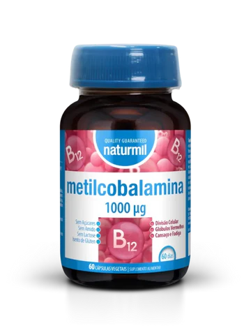 A metilcobalamina 1000 mcg da Naturmil é um suplemento alimentar à base de vitamina B12 na sua forma activa, indicado para apoiar o normal funcionamento do sistema nervoso, a produção de energia e a formação de glóbulos vermelhos. É especialmente útil em situações de carência de vitamina B12, fadiga, cansaço físico e mental, ou em regimes alimentares com ingestão reduzida desta vitamina. A vitamina B12 contribui ainda para o metabolismo energético normal, para o funcionamento psicológico adequado e para a redução do cansaço e da fadiga.